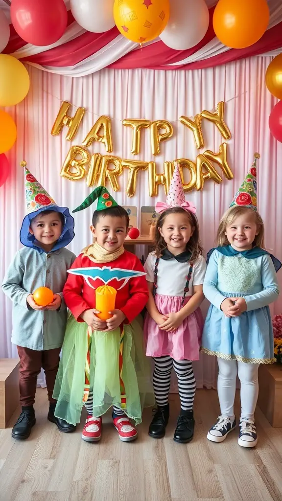 In the image, you see a group of kids in colorful costumes, each showcasing their unique style. They look excited and ready for a fun time. You can set up a small runway for them to show off their costumes. A panel of judges can award prizes for categories like ‘Most Creative’ or ‘Best Group Costume’.