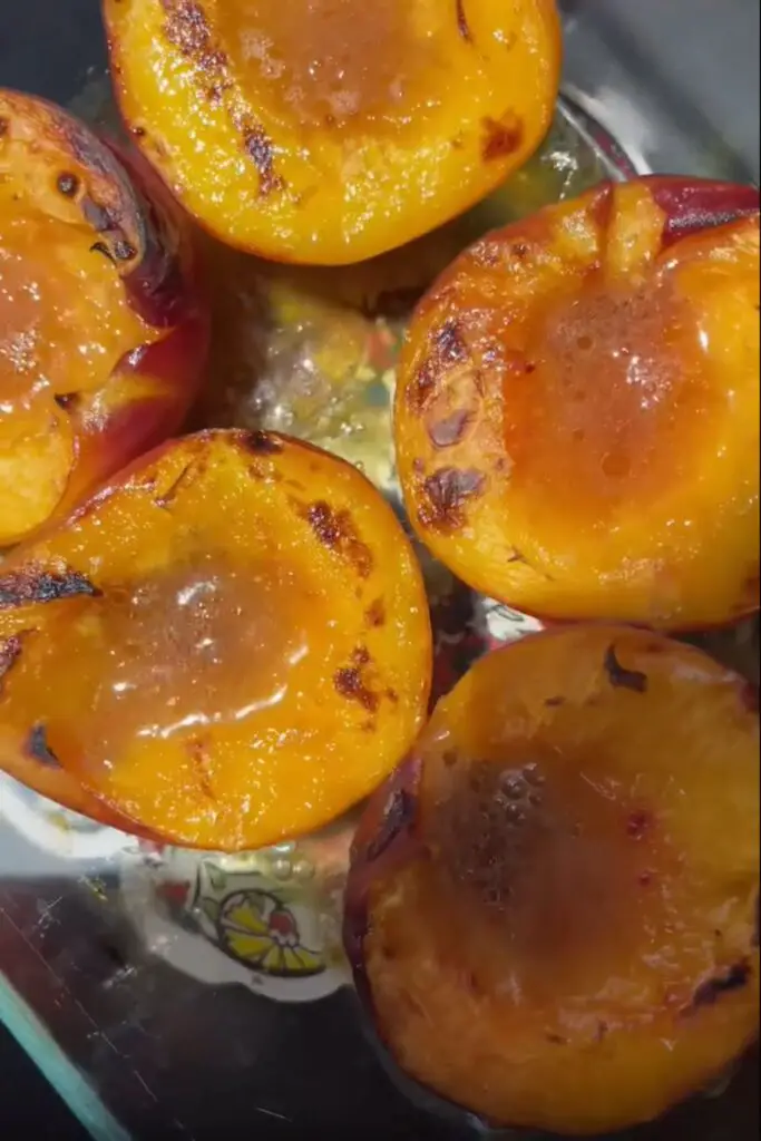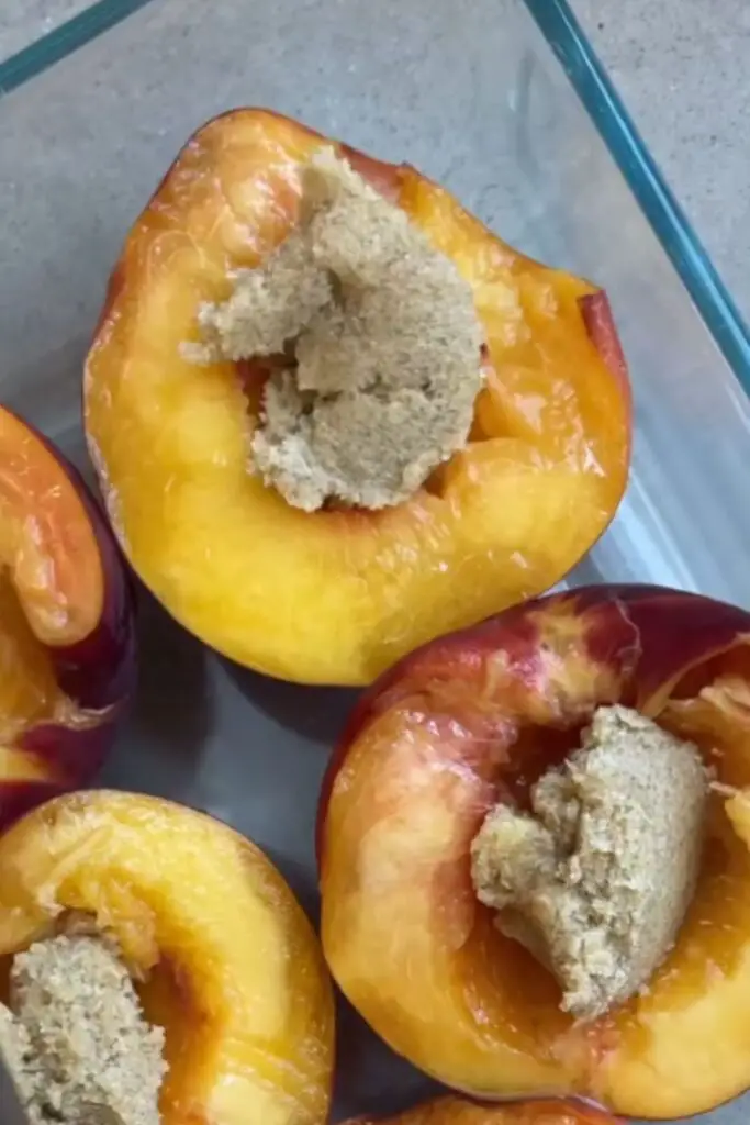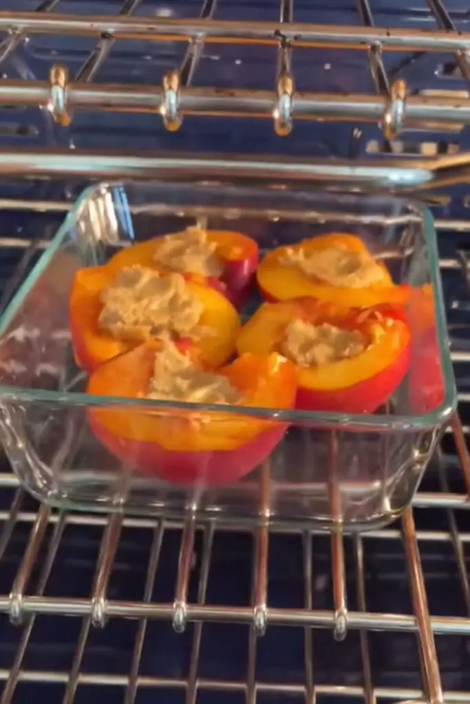 Step – 5: Bake in the preheated oven for 20-25 minutes, or until the peaches are tender and the sugar has caramelized into a glossy, golden topping. Keep an eye on them to prevent burning.