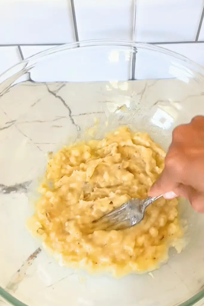 - Mash bananas in a large bowl until smooth but slightly chunky.
