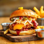 This BBQ chicken sandwich is a perfect blend of smoky, sweet, and tangy flavors wrapped in a soft, toasted bun. Juicy, tender chicken coated in rich barbecue sauce is layered with creamy coleslaw, pickles, and optional cheese, making every bite a symphony of textures and flavors. Whether you’re making a quick weekday lunch or a family gathering meal, this sandwich is a guaranteed crowd-pleaser. Easy to make and endlessly customizable, it’s comfort food at its finest.