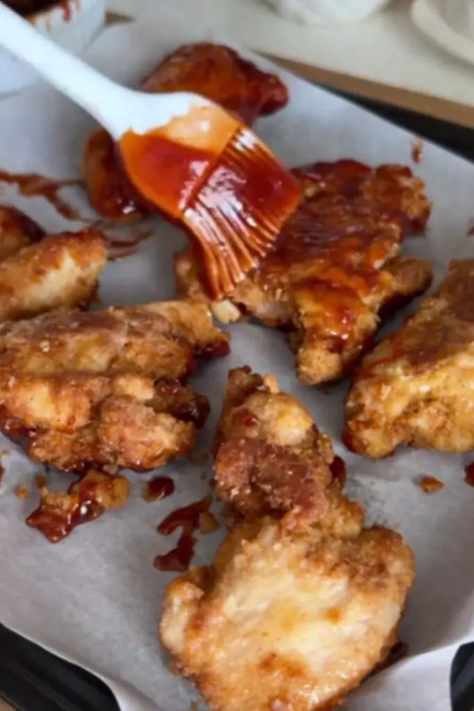 While the chicken is still warm, generously coat it with your barbecue sauce. For shredded chicken, toss it in a bowl with the sauce until fully coated. For whole chicken, brush the sauce on both sides.