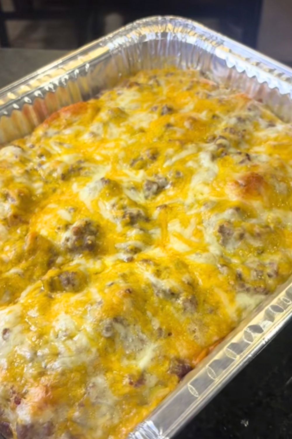 In a large mixing bowl, whisk together eggs, a splash of milk, and a pinch of salt and pepper. Layer the biscuit chunks in a buttered casserole dish, sprinkle cheese over the top if using, and pour the sausage and gravy mixture evenly over everything. Finally, pour the egg mixture over the top, letting it seep into every nook.