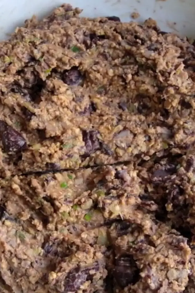 - Transfer to bowl and mix with remaining beans, oats, egg, spices, onion mixture.