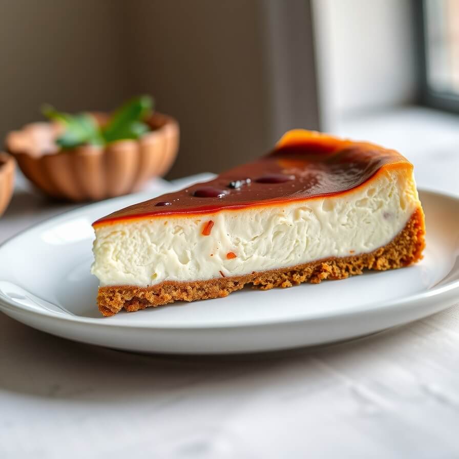 If you enjoy a slightly warm cheesecake, cut the slice after it has cooled just enough to hold shape. The inside will still be creamy and soft, almost like a custard. For a firmer, classic presentation, chill the cheesecake for a couple of hours before slicing. The chilled version cuts with crisp, smooth edges that make it look extra refined.