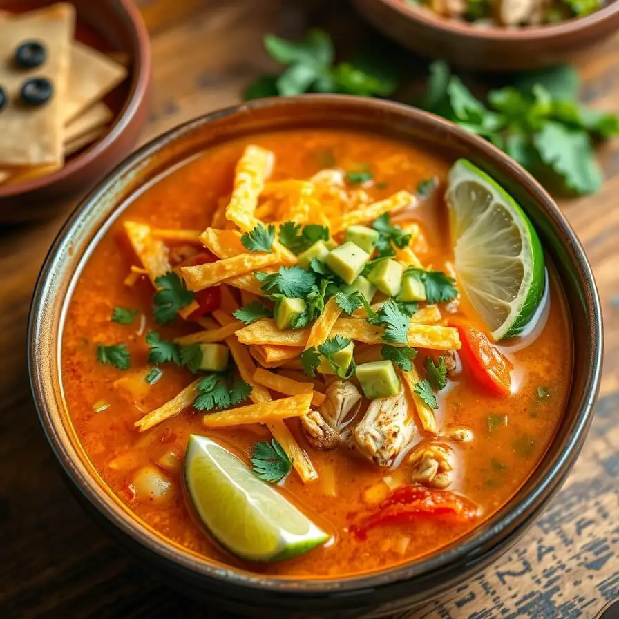 - Serve hot, topped with tortilla strips and optional toppings like avocado, cilantro, or a squeeze of lime.