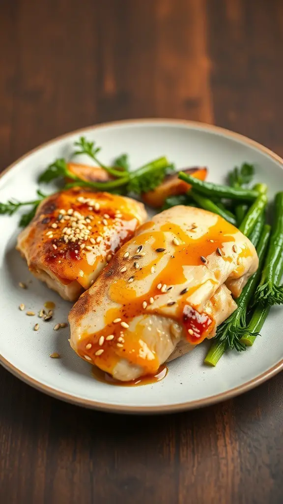 Honey mustard chicken thighs are a delightful dish that combines sweet and tangy flavors. The image shows beautifully cooked chicken thighs drizzled with a glossy honey mustard sauce. The vibrant colors of the dish make it look appetizing and inviting.