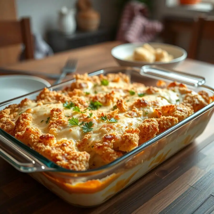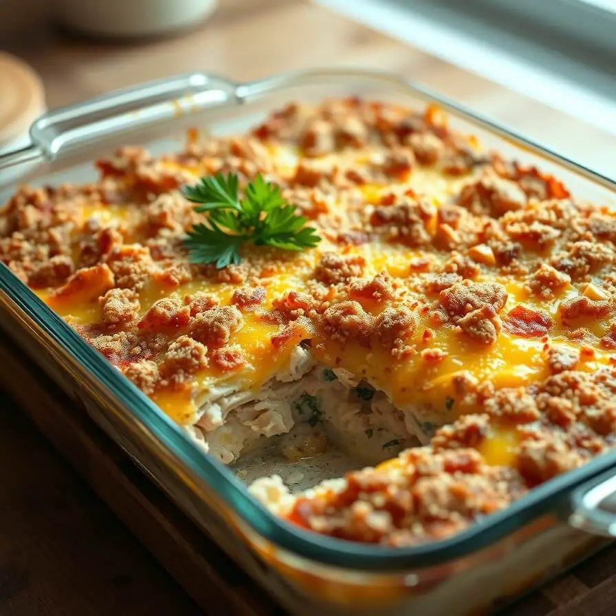 This chicken stuffing casserole is the ultimate comfort food—creamy, savory, and topped with a golden crunchy crust. Perfect for family dinners, holidays, or potlucks, it’s easy to prepare, crowd-pleasing, and endlessly adaptable.