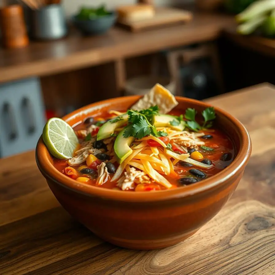 A warm, hearty, and flavorful slow-cooked soup filled with tender shredded chicken, beans, corn, and spices simmered in a rich tomato broth. This comforting recipe comes together effortlessly in the Crock Pot and is topped with crispy tortilla strips, avocado, and cheese for a restaurant-quality meal at home. Perfect for busy weeknights or cozy weekends, it’s a crowd-pleaser that tastes even better the next day.