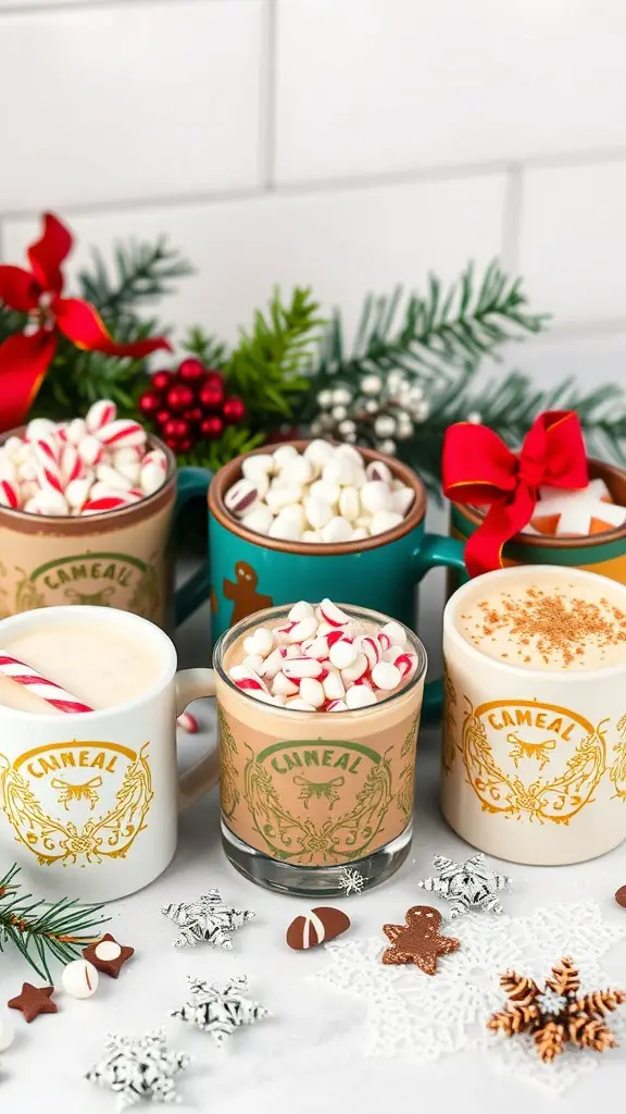 When it comes to a Christmas hot chocolate bar, the mugs and cups you choose can really set the mood. Picture a collection of cheerful mugs, each adorned with festive designs. You might see reindeer, Christmas trees, and snowflakes, all adding a touch of holiday spirit.