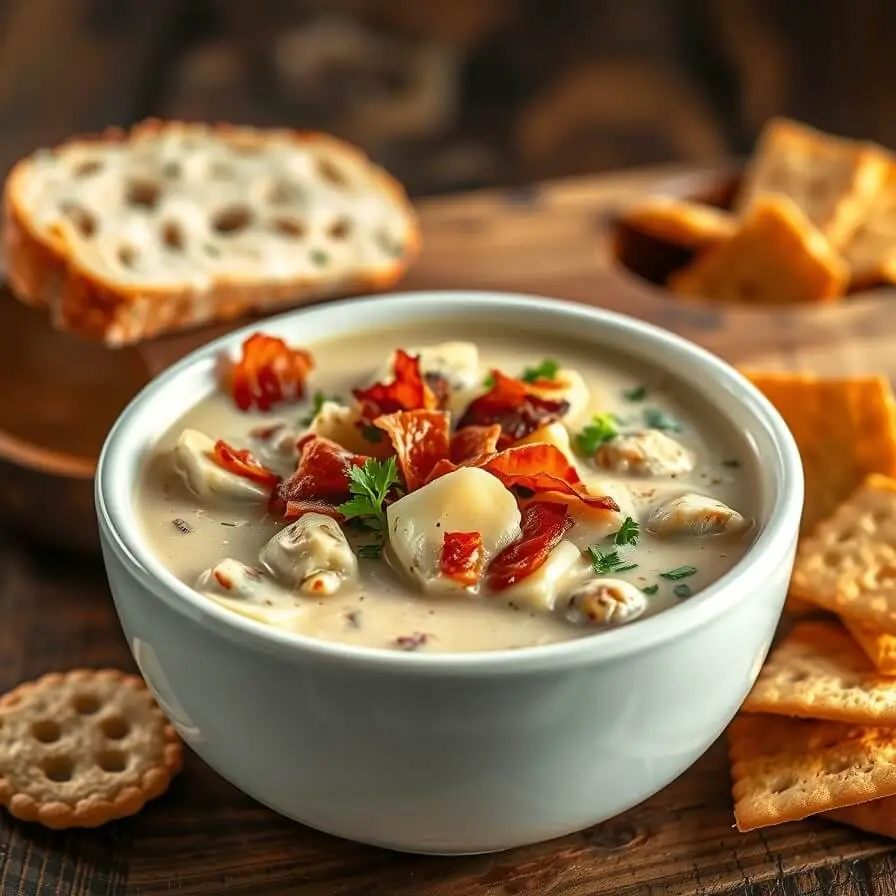 Remove the bay leaf and ladle the chowder into bowls. Garnish with crispy bacon pieces and a sprinkle of chopped parsley. Serve hot with oyster crackers or crusty bread for a truly comforting meal.