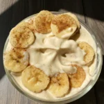 - Garnish and serve – Just before serving, sprinkle with cinnamon, nutmeg, or crushed cookies. Add any reserved banana slices on top for a fresh look.
