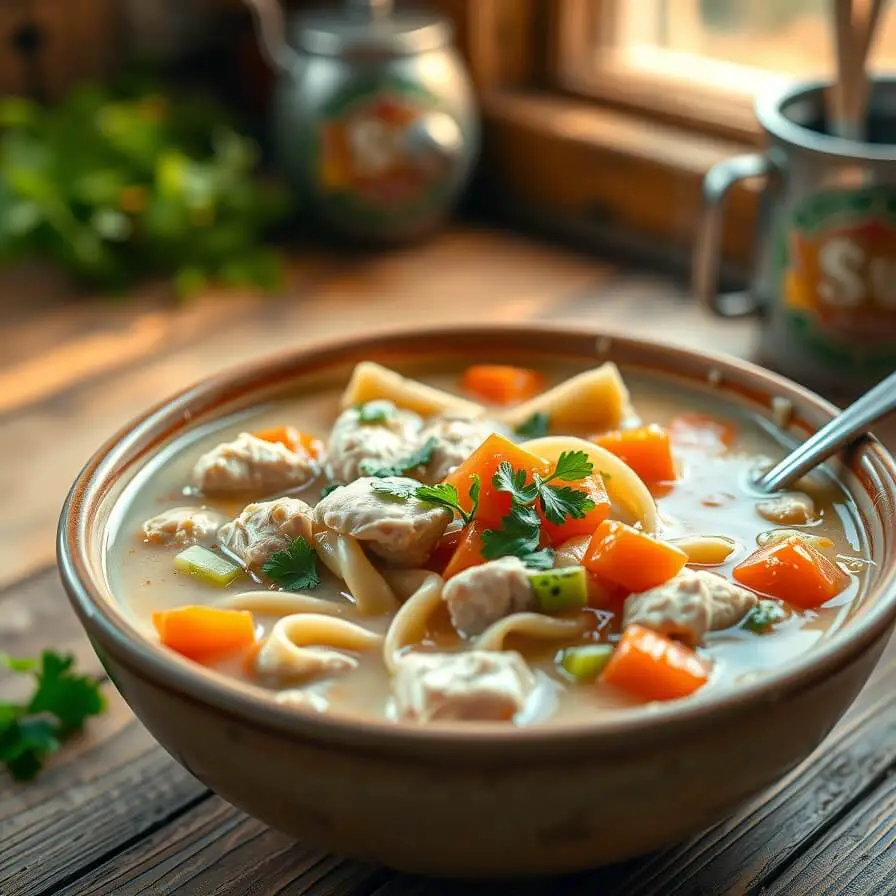 I still remember the first time I tried making creamy chicken noodle soup from scratch. It was a chilly autumn evening, the kind where the wind rattles the windows and everything inside the house feels cozy but a little too drafty. My little niece was visiting, and she had just come down with a sniffly cold. I wanted something comforting, something that would warm her tiny body from the inside out.