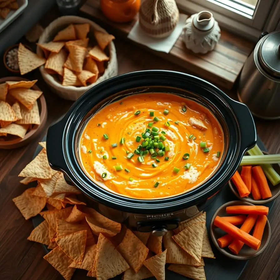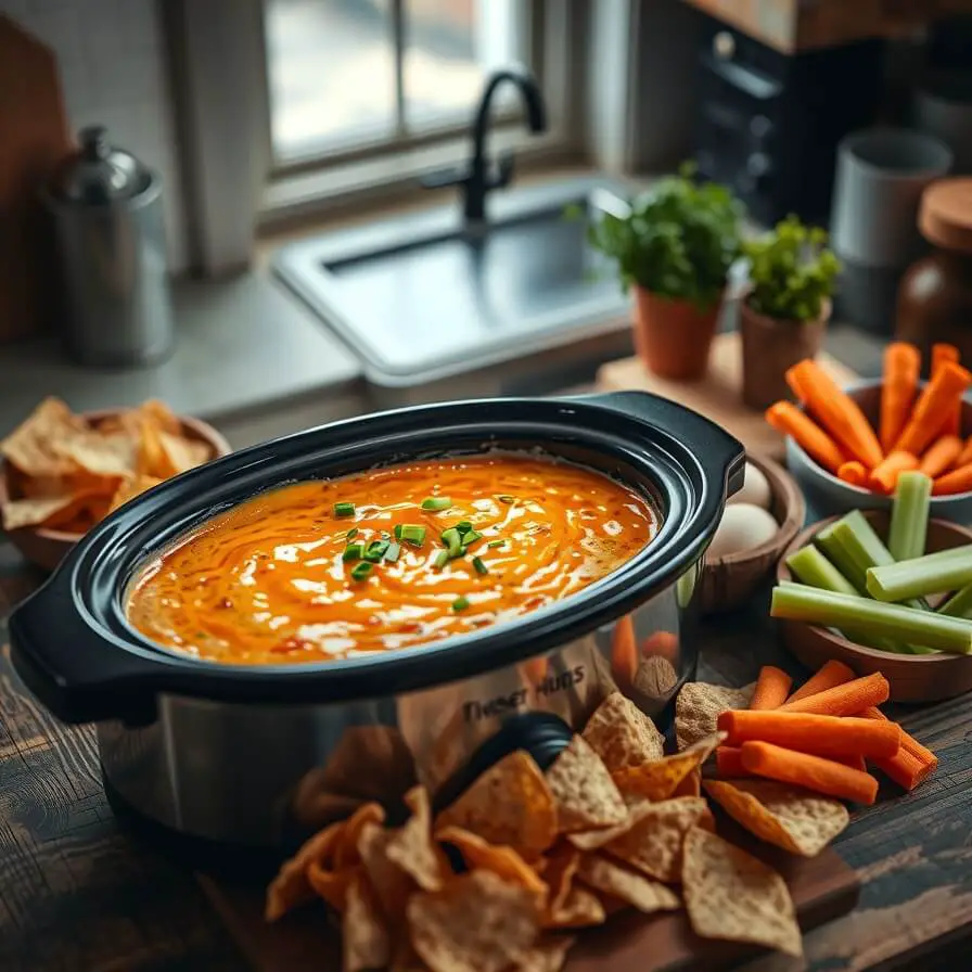 Turn your slow cooker to the “warm” setting and let guests help themselves. This dip stays creamy for hours — ideal for parties where everyone grazes over time.