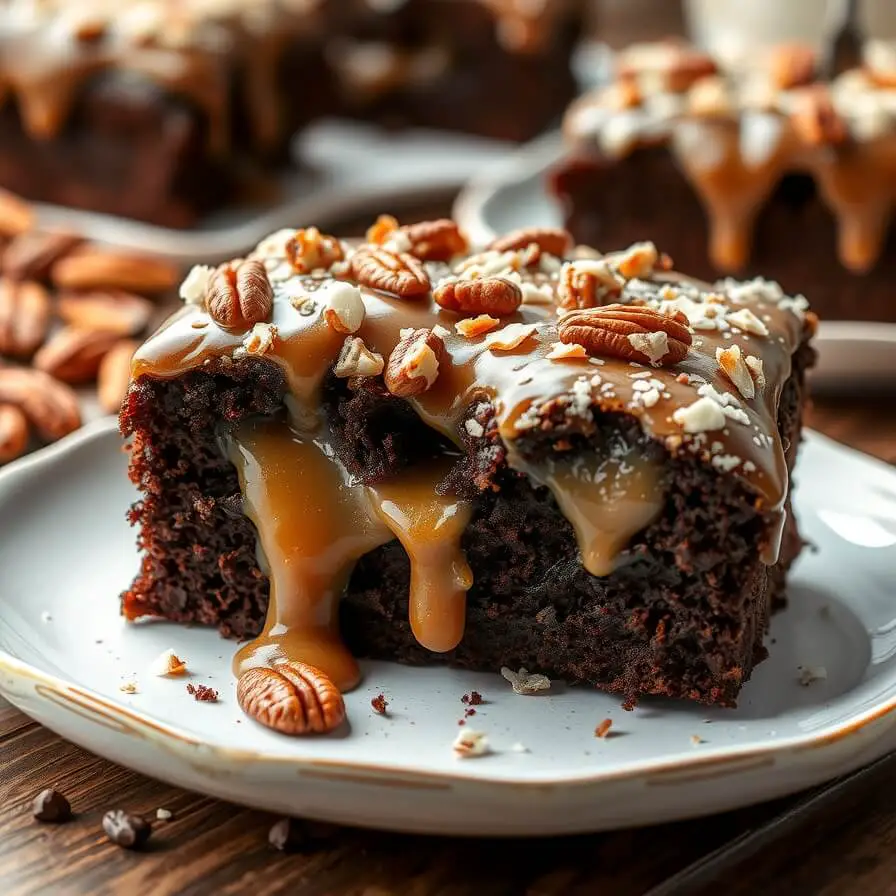 Don’t have pecans? Walnuts or almonds work beautifully. If you’re avoiding dairy, coconut cream can replace sweetened condensed milk, though you may need a bit of extra sugar to balance sweetness. You can even use dark chocolate chips for an extra chocolatey twist. The beauty of this cake is its flexibility—you can adjust ingredients slightly without compromising the indulgent texture.