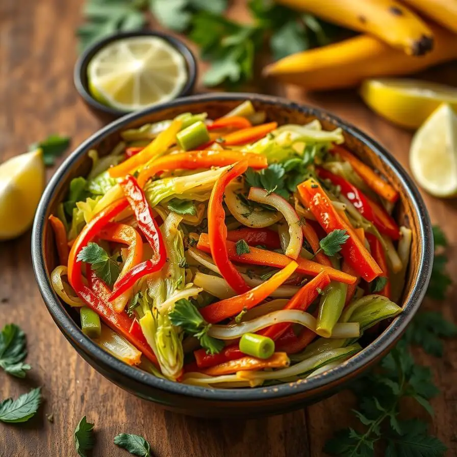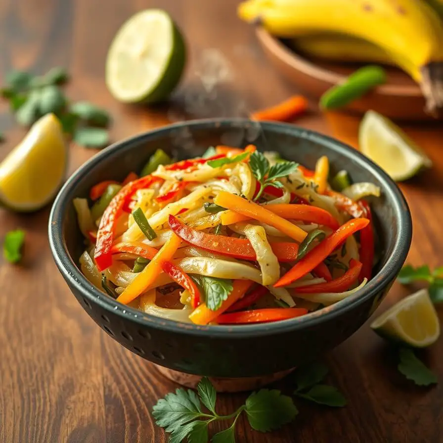 A vibrant, flavorful sautéed cabbage dish that captures the heart of Jamaican home cooking. Tender cabbage, bell peppers, carrots, and thyme are cooked together with aromatic spices and a touch of heat from Scotch bonnet pepper. It’s quick, colorful, and delicious — perfect as a side or a light main dish. Whether served with jerk chicken or a simple bowl of rice, this dish brings the warmth and flavor of the Caribbean right to your kitchen.