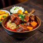 Rich, bold, and irresistibly tender — Jamaican oxtail stew is the epitome of Caribbean comfort food. This dish brings together deeply browned oxtail pieces, slow-cooked with thyme, garlic, Scotch bonnet pepper, and a medley of spices, until meltingly tender. Simmered low and slow, the sauce becomes thick and luscious, clinging to every bite. Butter beans add heartiness, while browning sauce lends a dark, glossy richness. Serve it with rice and peas or plantains, and you’ve got a meal that feeds the soul.
