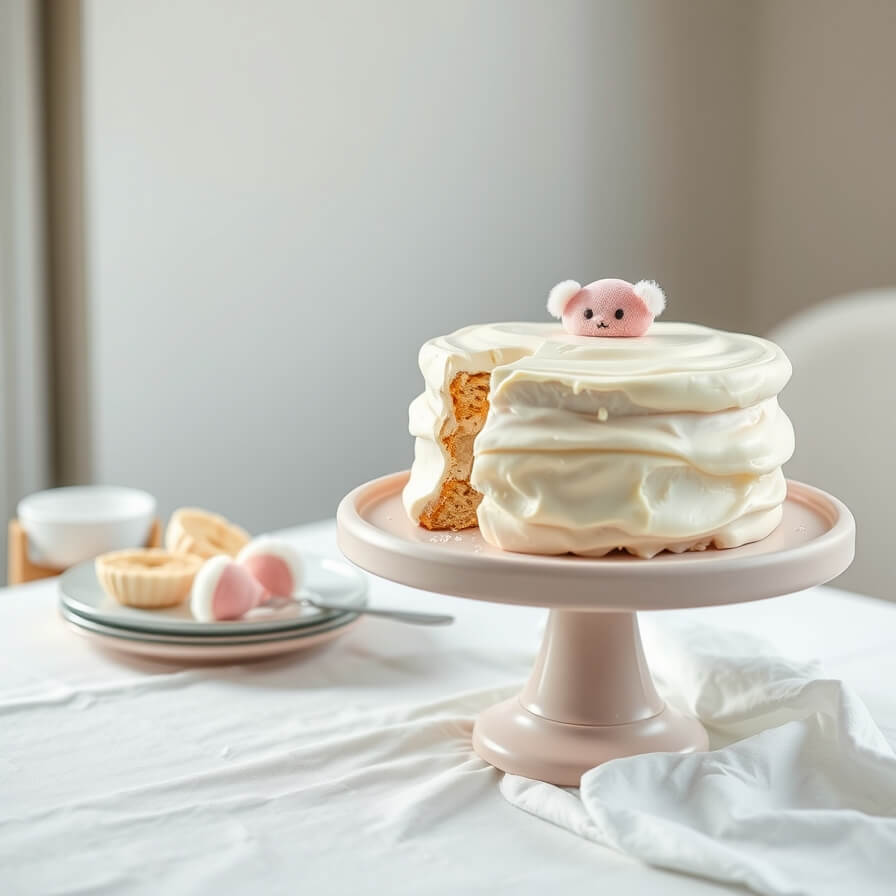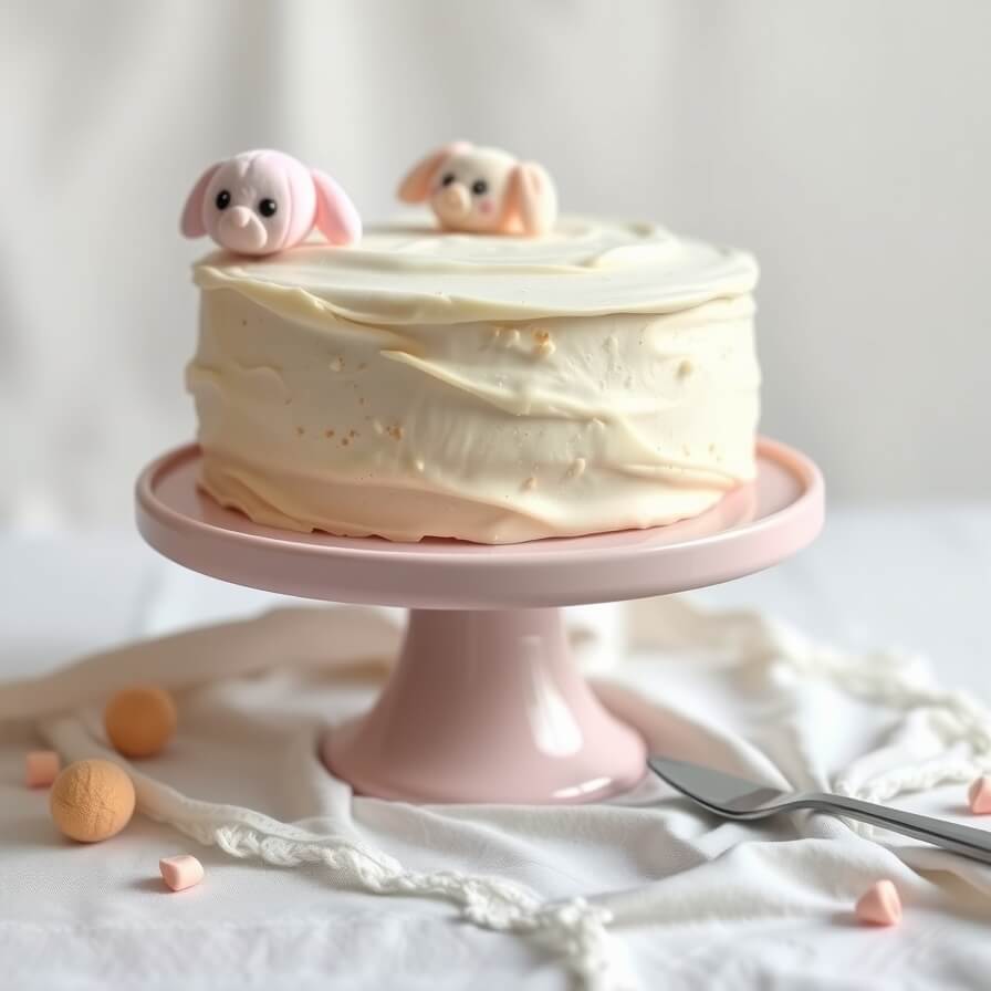 When frosting, use gentle swooping motions instead of trying to smooth everything flat. A small offset spatula or even the back of a spoon works beautifully to create that plush, cloud-like texture. If you’re adding facial details or minimal decoration, keep them subtle. A tiny dot for eyes, a faint blush of pink, or a soft bow can be enough.