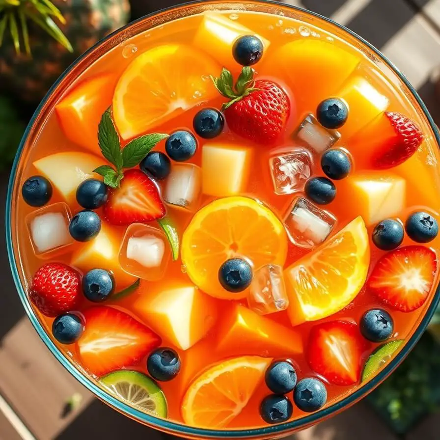 When it comes to jungle juice, the list of ingredients is part of the fun. I always start with fresh fruit—it makes a huge difference. You’ll want a mix of berries like strawberries, blueberries, and raspberries for that punch of color. Pineapple chunks are my secret weapon because they add a tropical sweetness that balances the tang of citrus fruits. Oranges, lemons, and limes not only bring brightness but also create a fresh, zesty aroma that fills the room as soon as you start mixing.