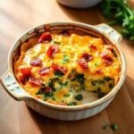 - Make-ahead: Assemble the casserole in your baking dish, cover tightly with foil, and refrigerate overnight. In the morning, add 5–10 extra minutes to the bake time to account for cold ingredients.