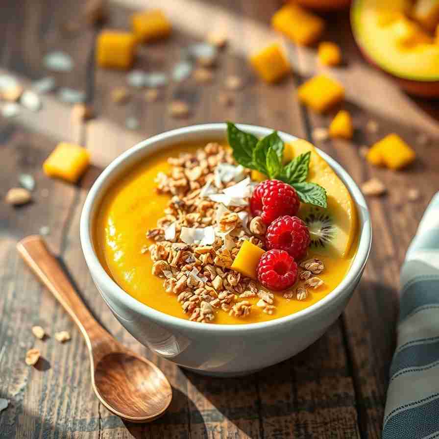 This mango smoothie bowl blends ripe mangoes, frozen banana, and creamy yogurt into a luscious, spoonable base topped with granola, fruit, and coconut. Perfect for bright mornings, summer brunches, or anytime you need a refreshing, wholesome treat.