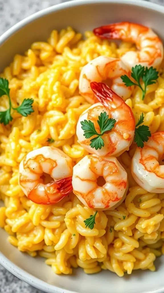 This saffron risotto with shrimp is a delightful dish that brings a taste of the Mediterranean right to your table. The creamy texture of the risotto pairs perfectly with the tender shrimp, creating a satisfying meal.