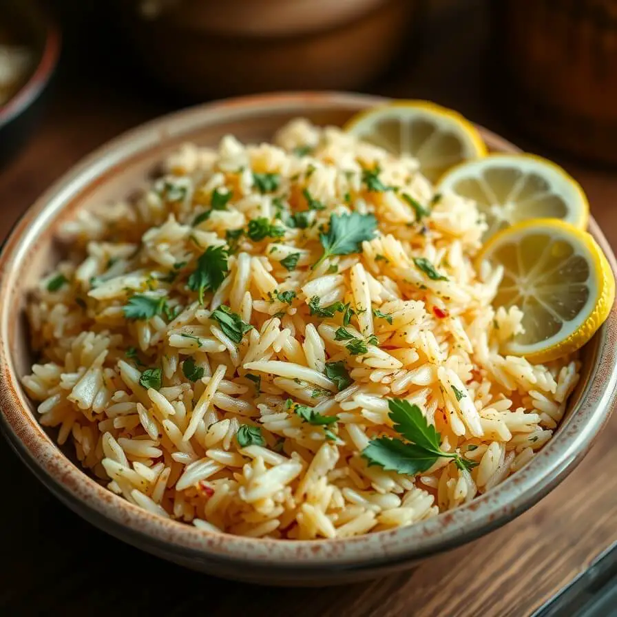 I like to serve it in a wide, shallow dish rather than a deep bowl. This lets the steam escape gently and keeps the grains fluffy instead of compacted. Just before bringing it to the table, I scatter a small handful of chopped parsley on top. Sometimes I add a few thin lemon slices along the edge of the dish—simple, but they instantly make the presentation feel brighter and more intentional.