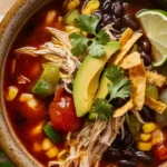 Hearty, vibrant, and deeply comforting, this Mexican soup is a flavorful one-pot meal loaded with tender chicken, black beans, corn, and warming spices. It’s easy to make, perfect for weeknights, and highly customizable. Top it with avocado, tortilla strips, or a squeeze of lime and you’ve got a dish that hits every craving. Whether you want a quick dinner or a nourishing meal-prep option, this soup never disappoints.