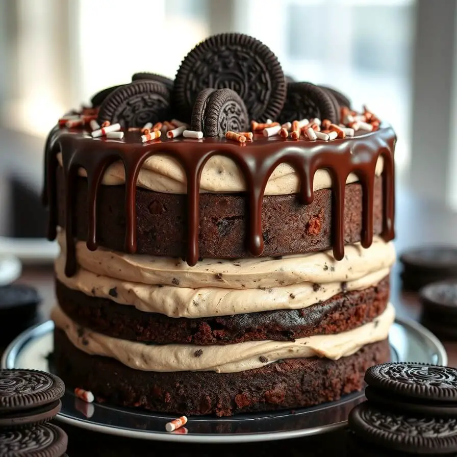 The kitchen was a mess that afternoon. There was powdered sugar dust floating in the air, cookie crumbs scattered on the counter, and my mixer nearly gave up while whipping the buttercream. But when I stacked the layers, drizzled ganache down the sides, and topped the whole thing with a crown of Oreos, the cake looked like something straight out of a bakery window.