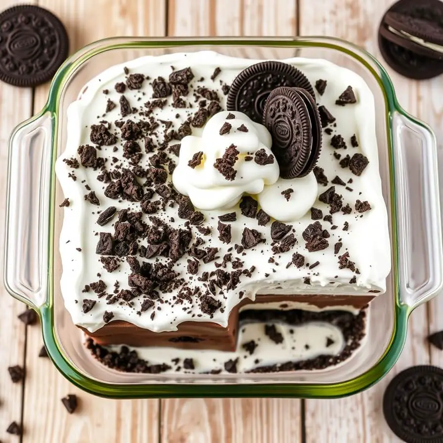 When you first bite into it, you notice the snap of Oreo crumbs giving way to silky cream cheese sweetness. Then the pudding hits—dark, rich, and velvety—balanced by the fluffy topping. It’s a dessert that keeps your spoon coming back because no two bites are exactly the same.