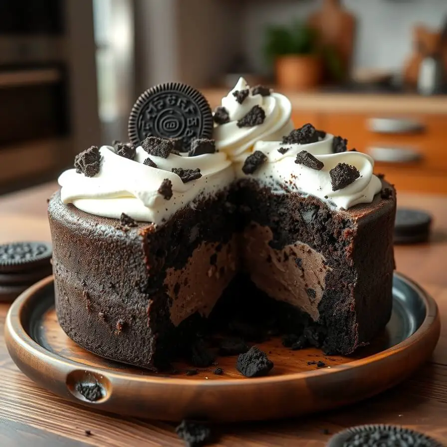 Top it off – Spread thawed whipped topping across the cake. Sprinkle generously with crushed Oreos. If you saved whole cookies for decoration, press them gently into the top for a festive touch.