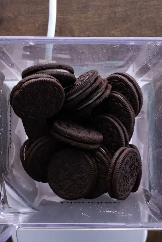 Place your Oreos in a food processor and pulse until they turn into fine crumbs. The texture should resemble potting soil (sounds strange, but trust me). If you don’t have a food processor, put the cookies in a zip-top bag and crush them with a rolling pin. It’s oddly satisfying and works just as well.