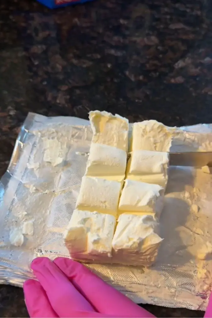 - Mix crumbs with softened cream cheese in a bowl until a thick dough forms.