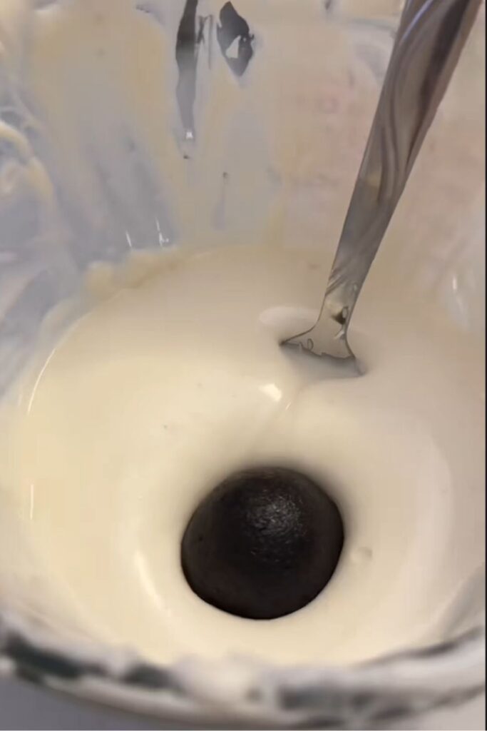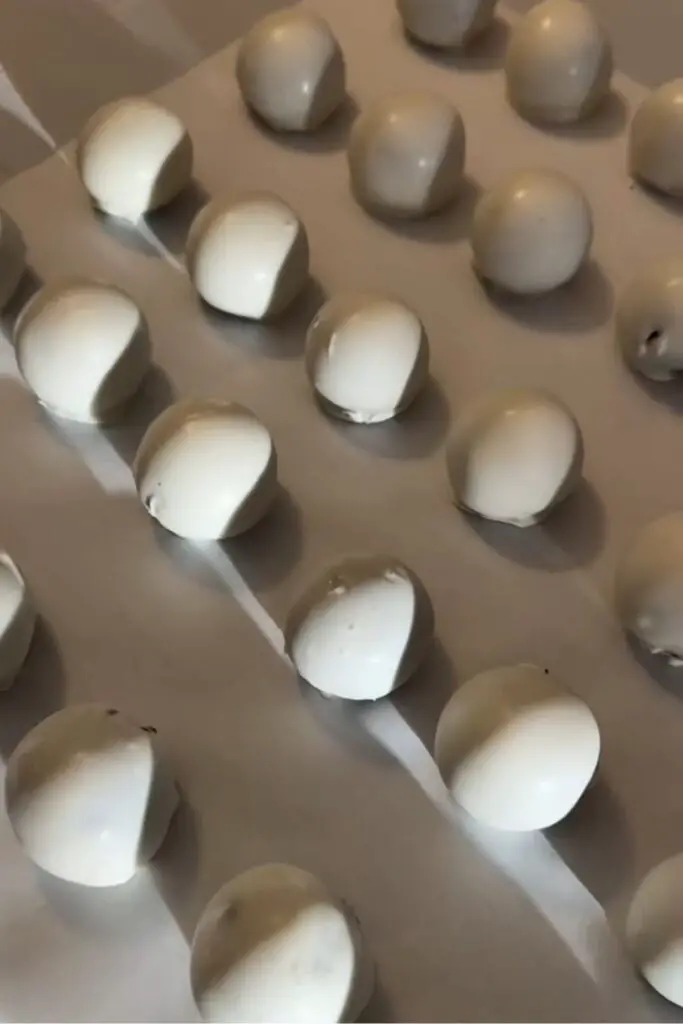 - Dip chilled balls into chocolate using a fork, letting excess drip off.