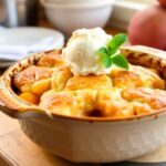 I’ve learned over the years that how you serve a peach cobbler can elevate it from “just dessert” to something memorable. For family dinners, I like to scoop it straight into individual bowls, letting the steam curl up around a generous spoonful of vanilla ice cream. The contrast of warm peaches and cold ice cream is pure magic.