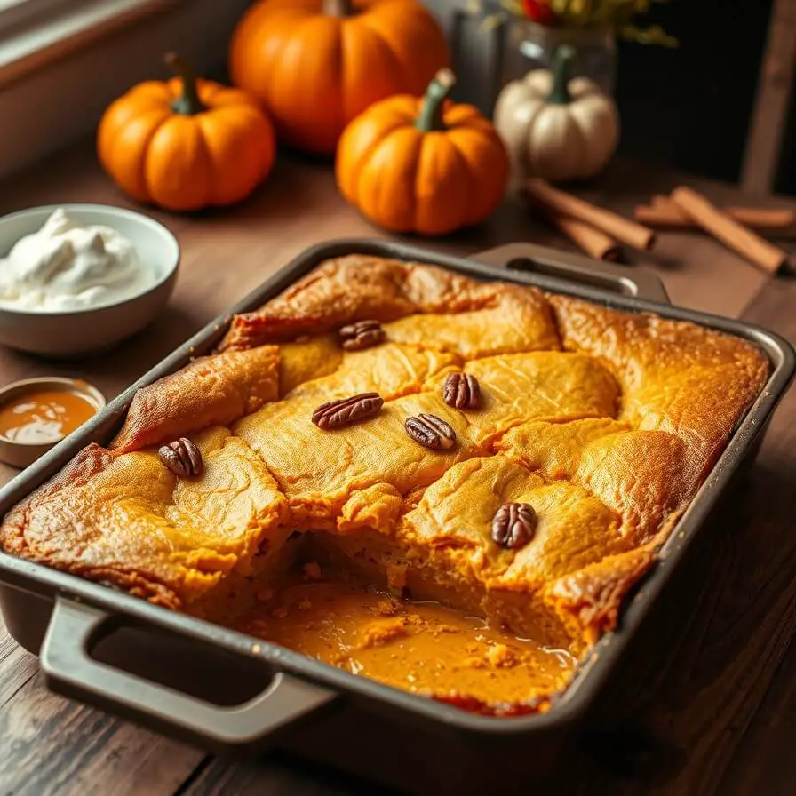 Storing pumpkin dump cake is easy, and it actually tastes even better the next day once the flavors meld. Cover the cake tightly with plastic wrap or aluminum foil and keep it at room temperature for up to two days. For longer storage, refrigerate it in an airtight container—it will last up to 5 days and remain moist.