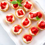 Try serving them on a white ceramic platter to make the strawberry topping pop. If you’re entertaining, line the tray with fresh mint leaves or edible flowers for a garden-party look. Want to impress at a bridal shower or birthday brunch? Serve each bite in a mini cupcake wrapper with a gold or pastel hue.