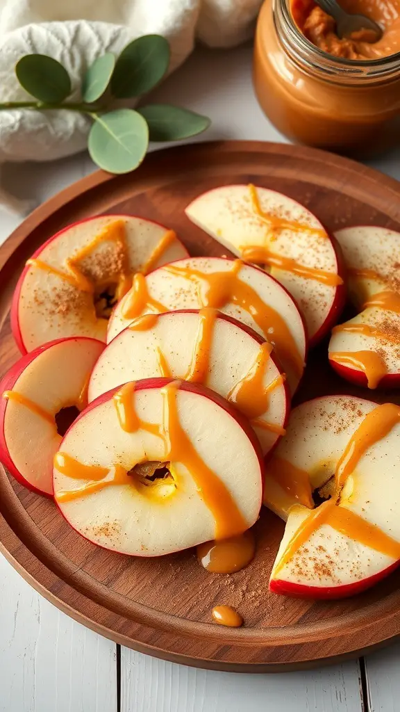 Cinnamon apple nachos are a fun and healthy dessert option. They look amazing and taste even better! This dish features fresh apple slices drizzled with a rich, sugar-free caramel sauce and a sprinkle of cinnamon.